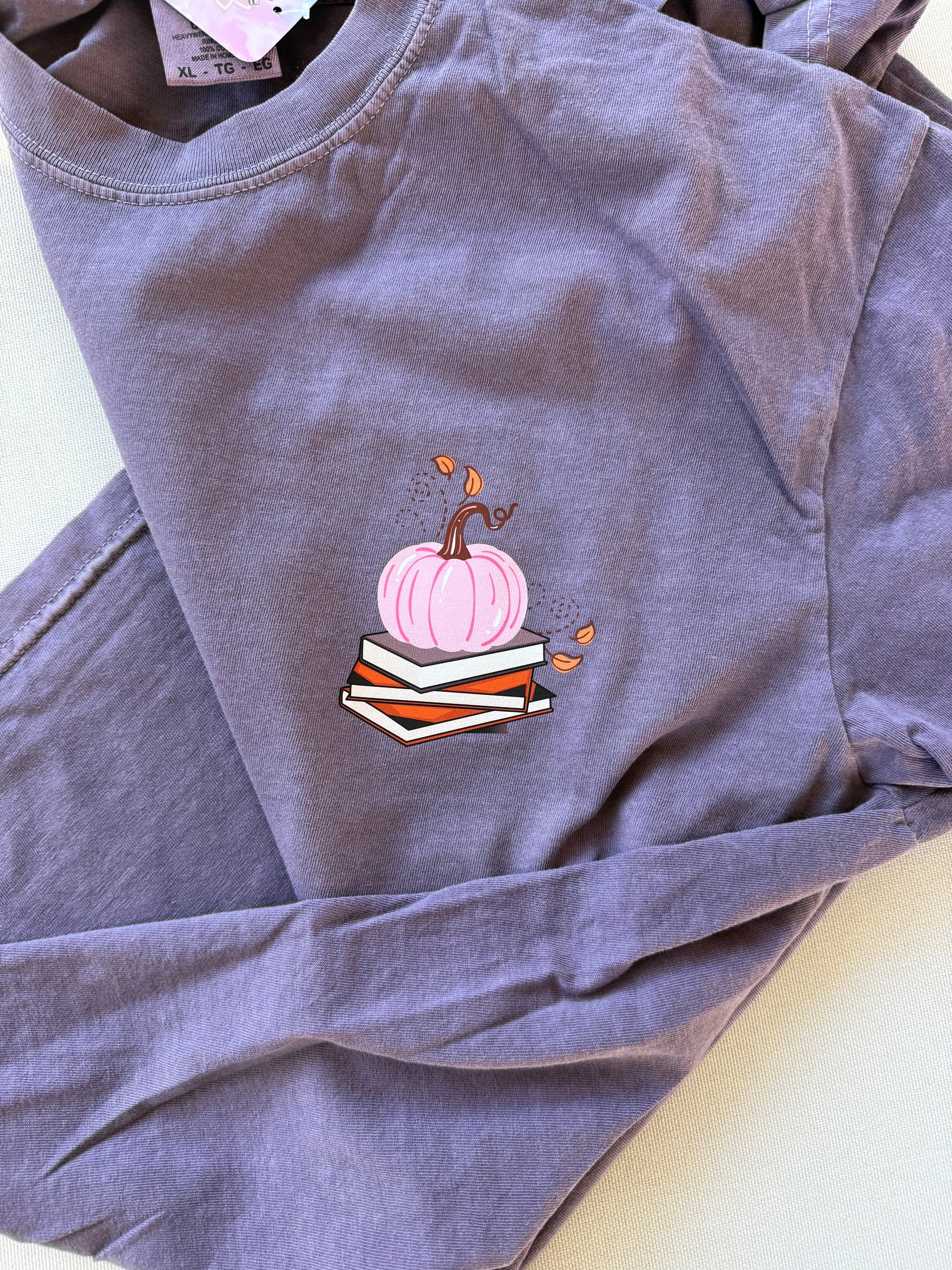 Calling all book lovers do I have the shirt for you. Each shirt is pressed in house using an industrial heat press. The design is a DTF print or a screen print transfer which you can feel on the surface of the shirt.